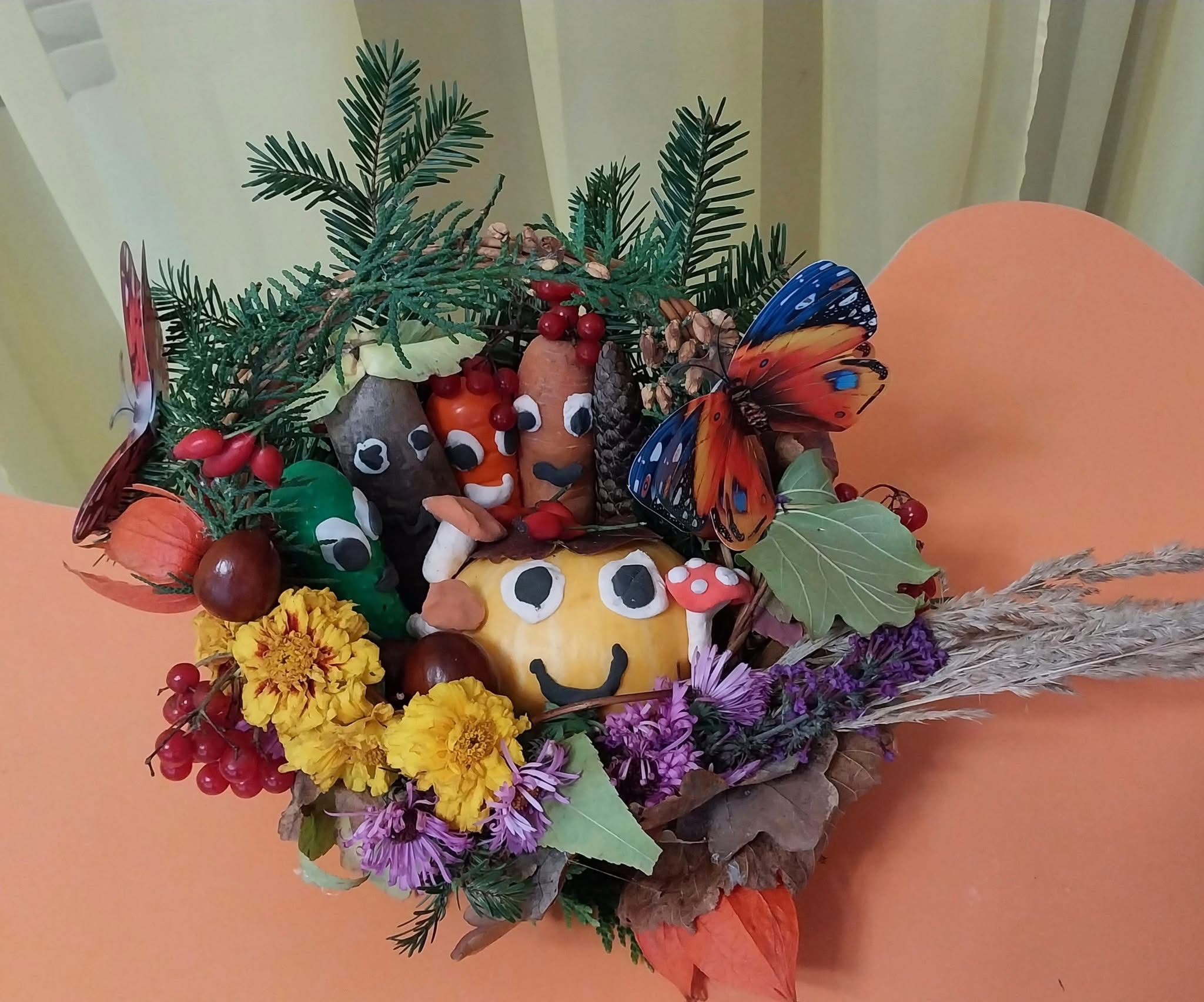 На виставці були представлені справжні витвори мистецтва, створені з дарів осені – овочів, фруктів, квітів і природних матеріалів.