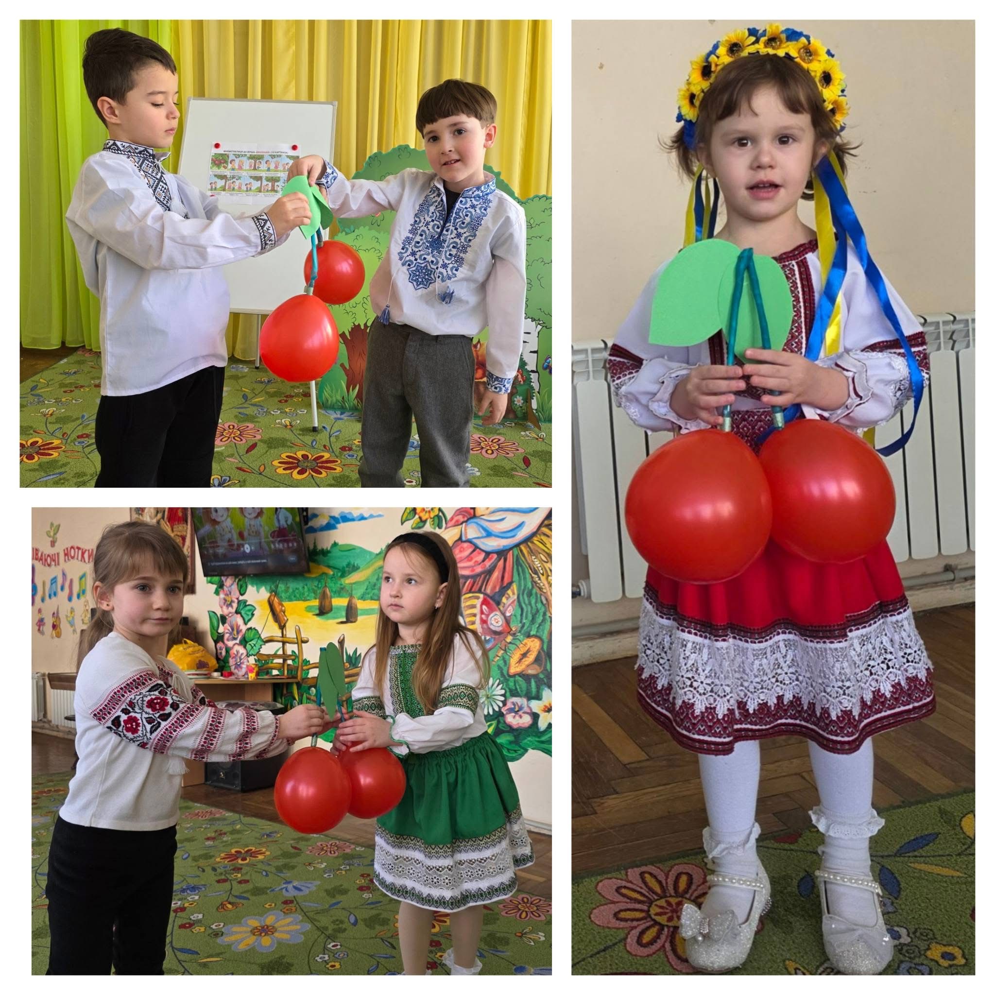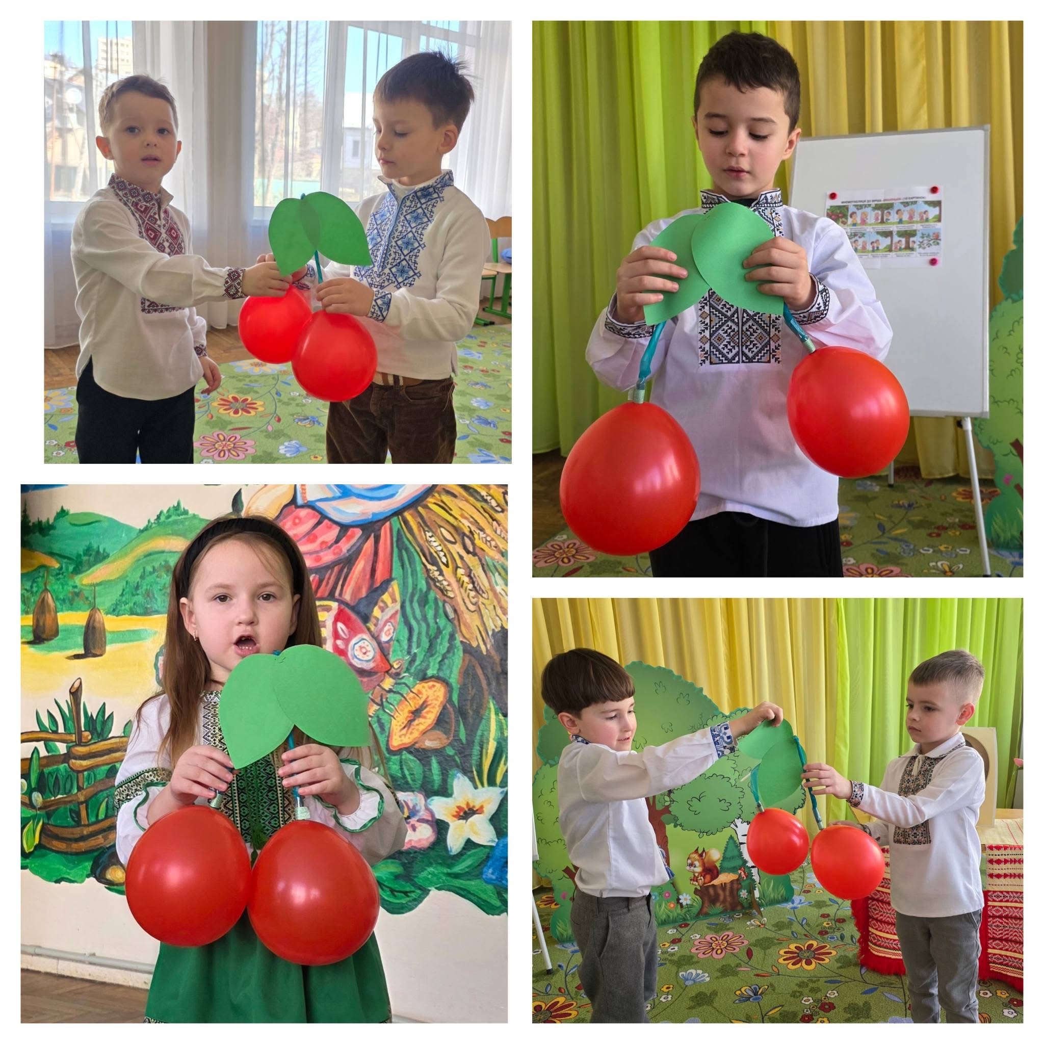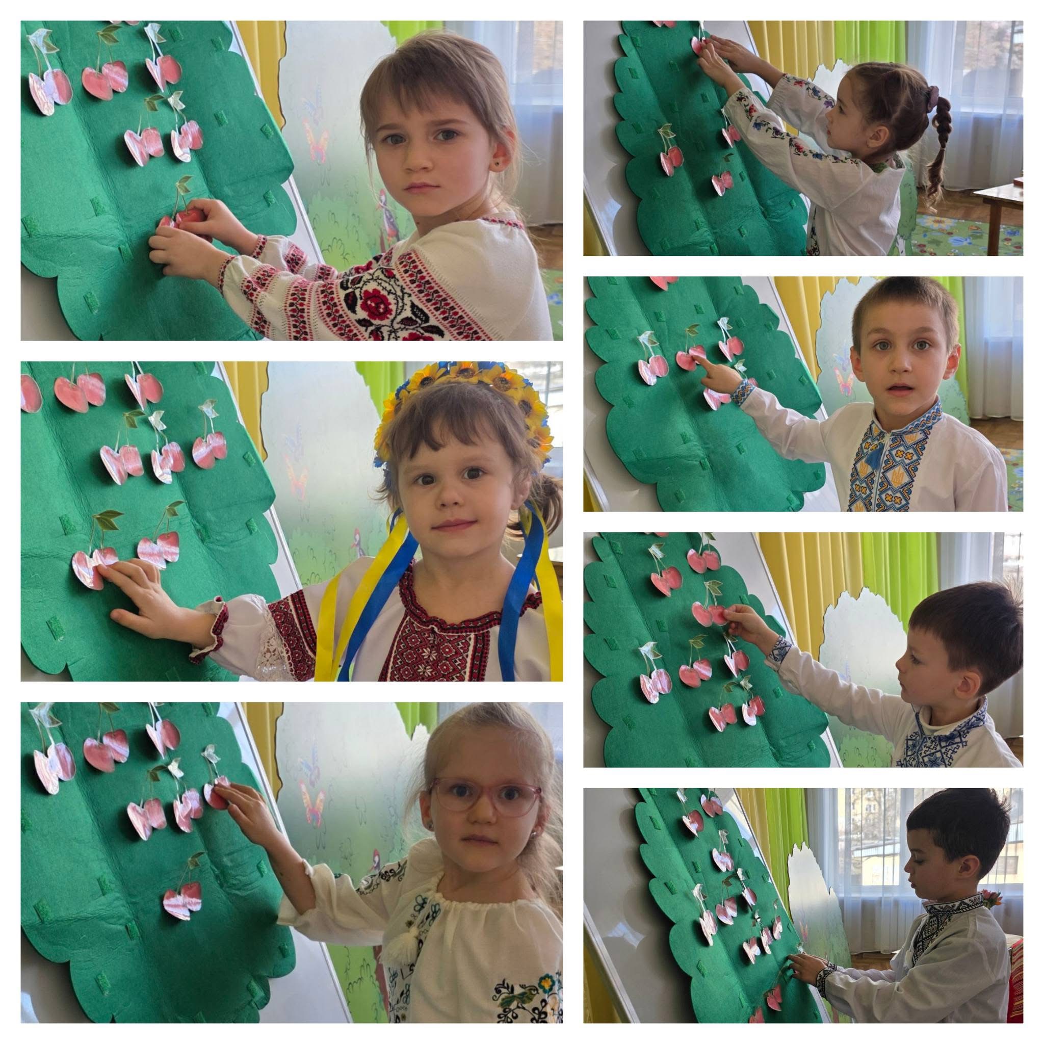 Вихованці старших груп побували «під вишневим деревом» — за мотивами поезії «Вишеньки-черешеньки». Діти декламували вірш, грали, танцювали та створили власні яскраві вишеньки з пластиліну.