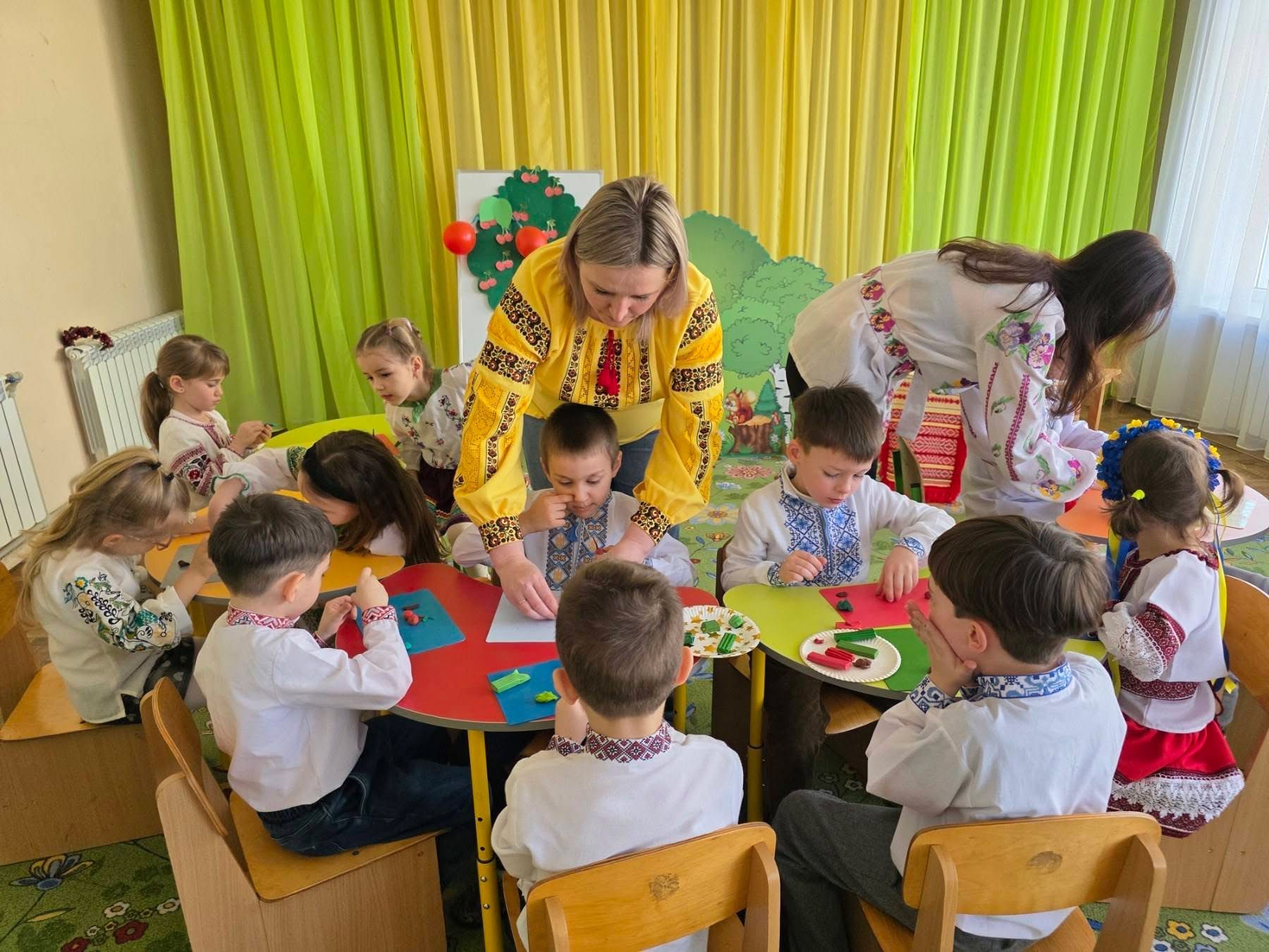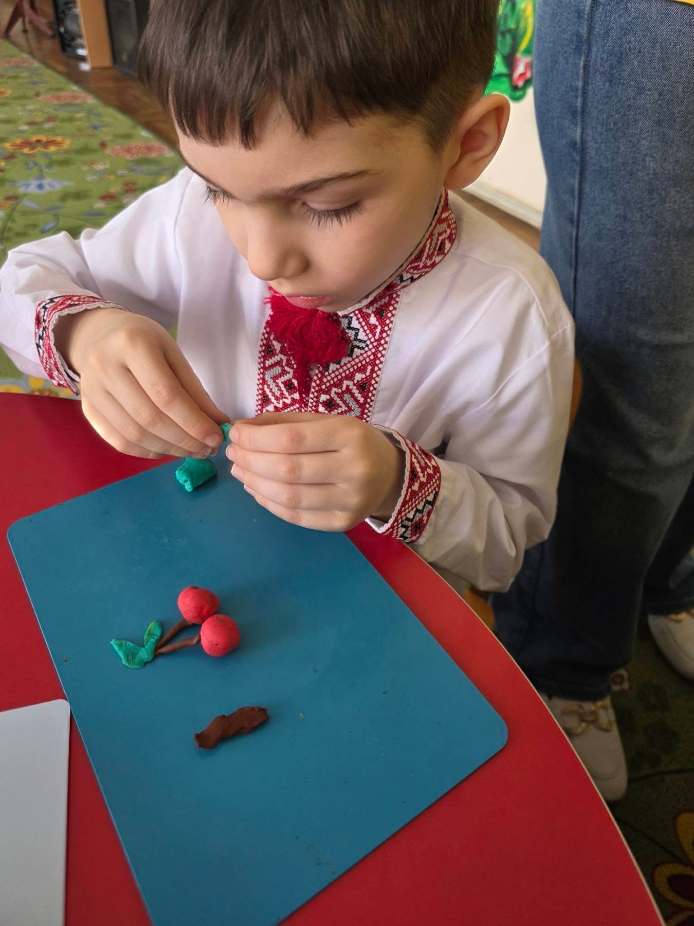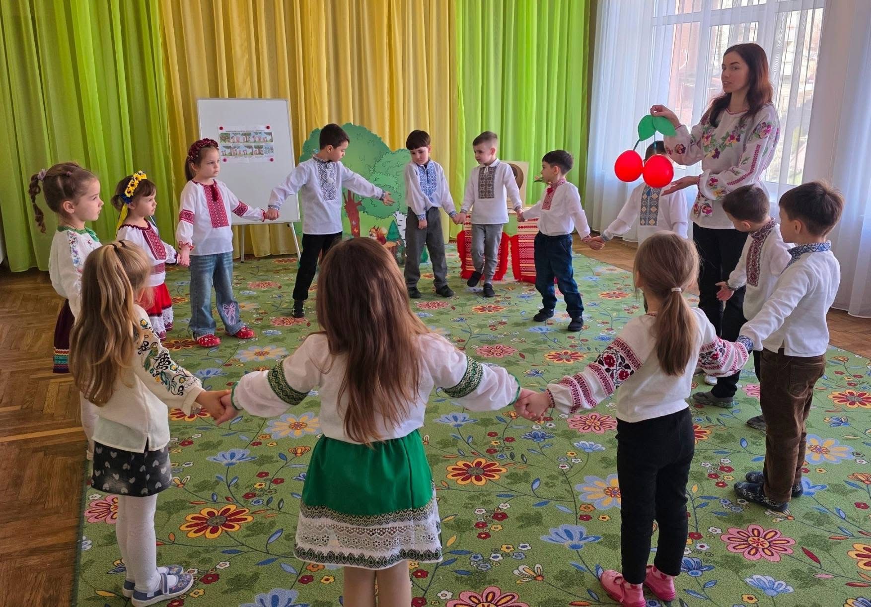Вихованці старших груп побували «під вишневим деревом» — за мотивами поезії «Вишеньки-черешеньки». Діти декламували вірш, грали, танцювали та створили власні яскраві вишеньки з пластиліну.